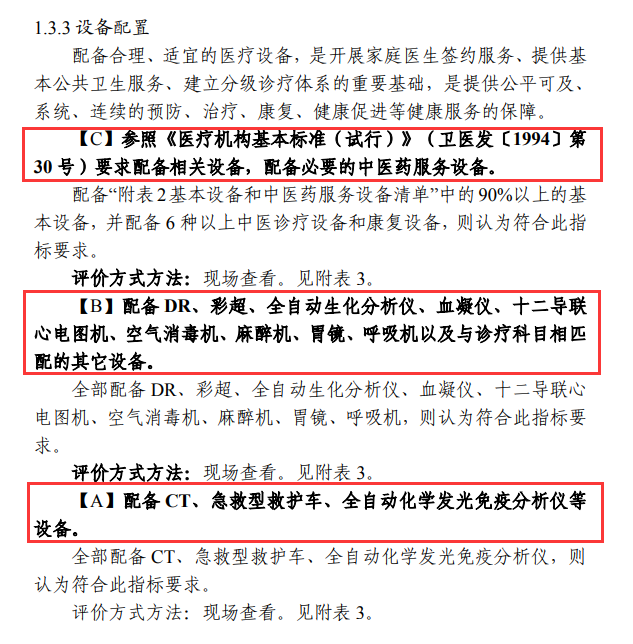 在設備配置方面,除了基礎設備,還要求提高檢驗檢查服務能力,合理配置和更新必要的設施設備,開展常規檢驗和心電、超聲、X線影像等檢查服務。