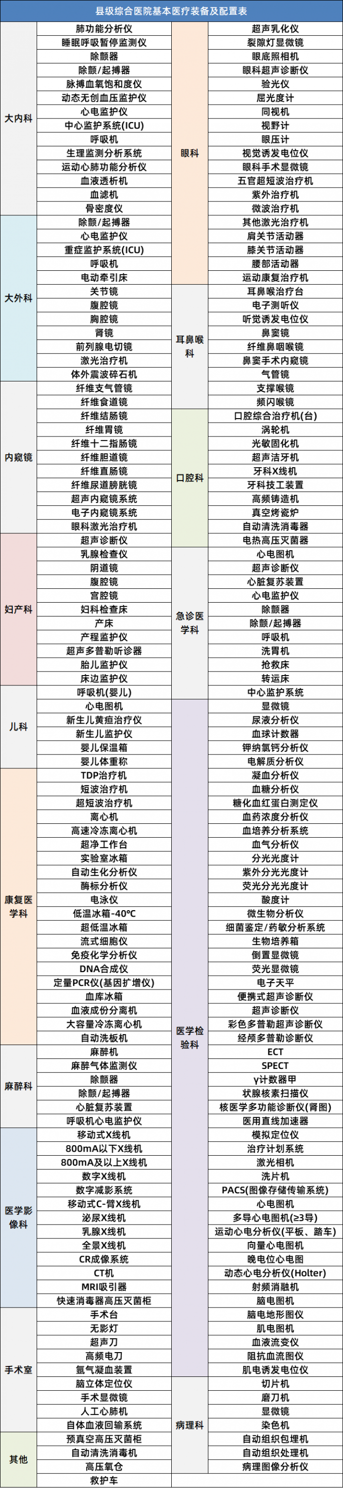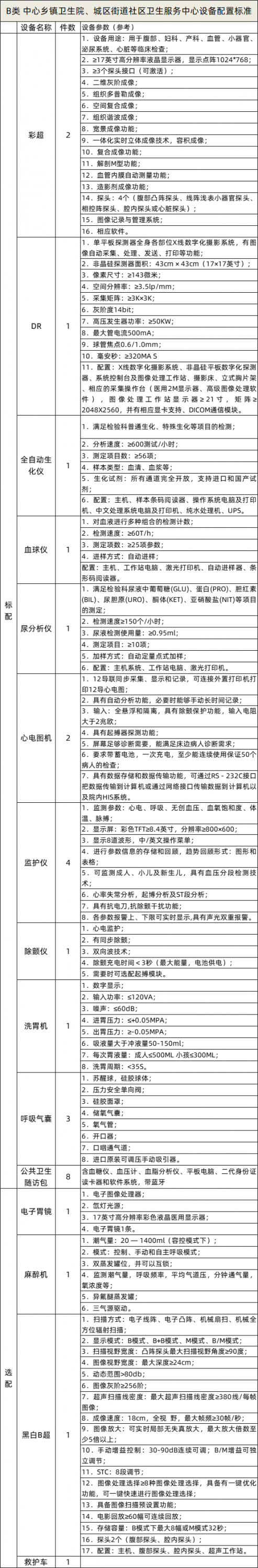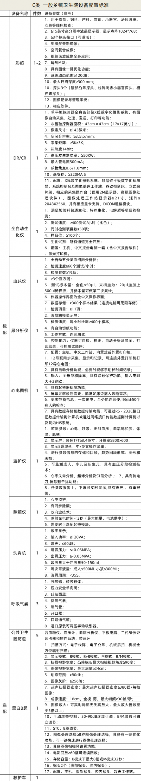 首先是縣級醫院醫療器械配置表: