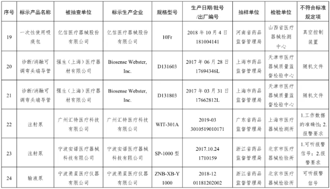 附件:國家醫療器械抽檢不符合標準規定產品名單