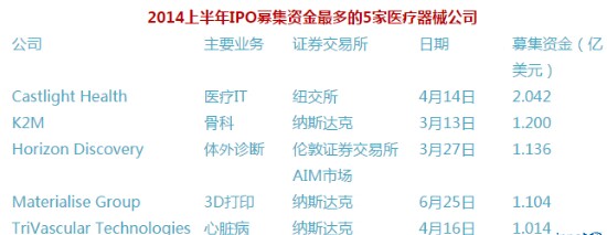 今年出現(xiàn)的另一個(gè)新趨勢(shì)是,過去公司們更愿意保持獨(dú)立,而現(xiàn)在則期望交易。分析顯示,今年上半年醫(yī)療器械公司通過IPO募集了13億美元資金。這個(gè)數(shù)字比2013年全年的9億美元還要多44%。