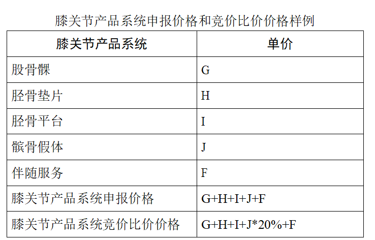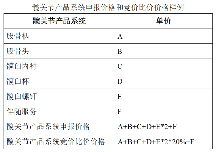 同一部件產品在髖 關節或膝關節不同產品系統類別和產品系統中價格應保持一致;