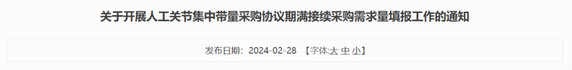 全國多地啟動人工關節(jié)接續(xù)采購需求量填報。