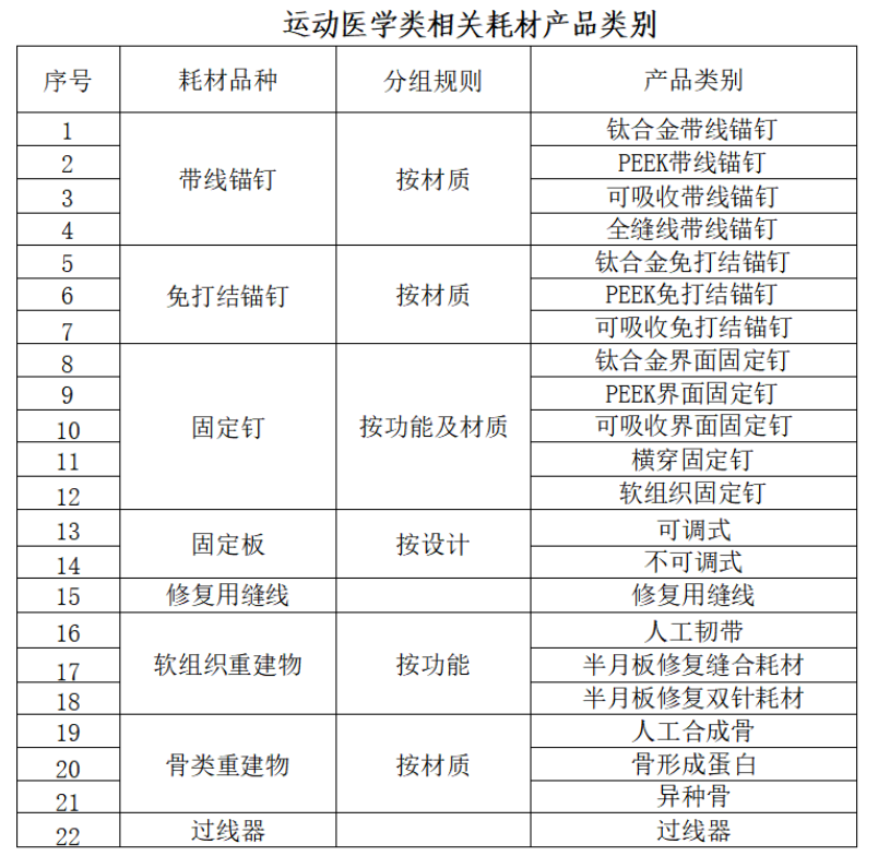 關節鏡工作套管、關節鏡用等離子刀頭、關節鏡用射頻刀頭、關節用脈沖沖洗器、連接泵管、鉆頭、磨頭、刨刀、同種異體骨不采取帶量采購方式,通過競價方式形成掛網價格。