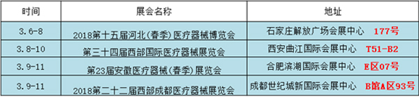 - 華康普美2018年全國(guó)春季醫(yī)療器械展會(huì)日歷2018-03-01