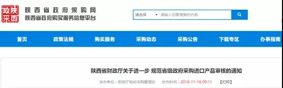 11月16日,陜西省財(cái)政廳發(fā)布了《陜西省財(cái)政廳關(guān)于進(jìn)一步 規(guī)范省級(jí)政府采購進(jìn)口產(chǎn)品審核的通知》(以下簡稱《通知》)。