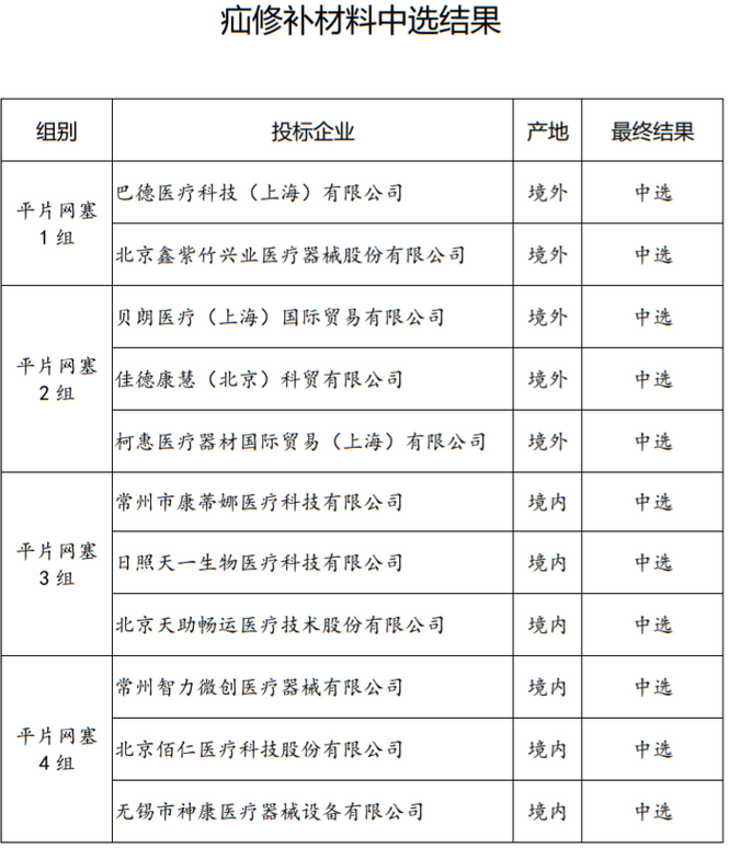 疝修補(bǔ)材料中選企業(yè)包括巴德醫(yī)療、貝朗醫(yī)療、柯惠醫(yī)療等械企。