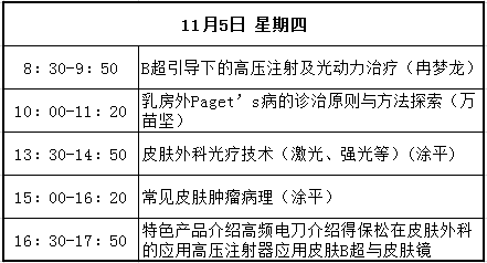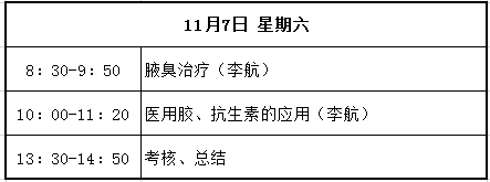 課程內容涉及皮膚外科的各種理論和基本技能及常見術式,諸如皮瓣、植皮等復雜成形技術,Mohs顯微描記手術,毛發移植,磨削,腋臭微小切口手術,皮膚腫瘤診治、激光美容、皮膚鏡應用等。主要授課人包括李航、楊淑霞、涂平等多年從事皮膚外科或皮膚病理的專家。課程時間