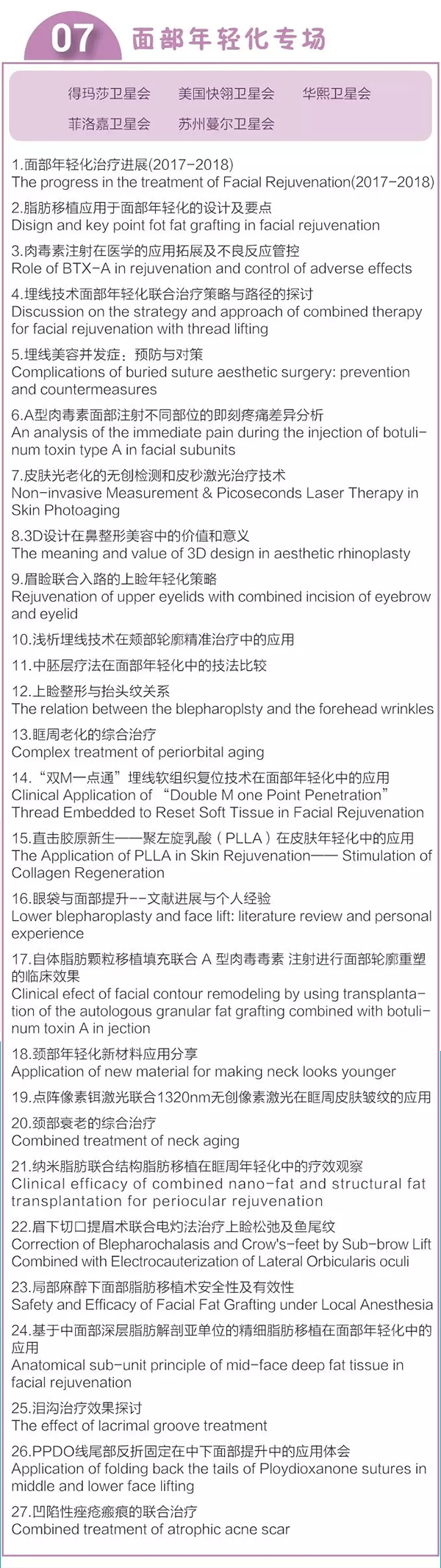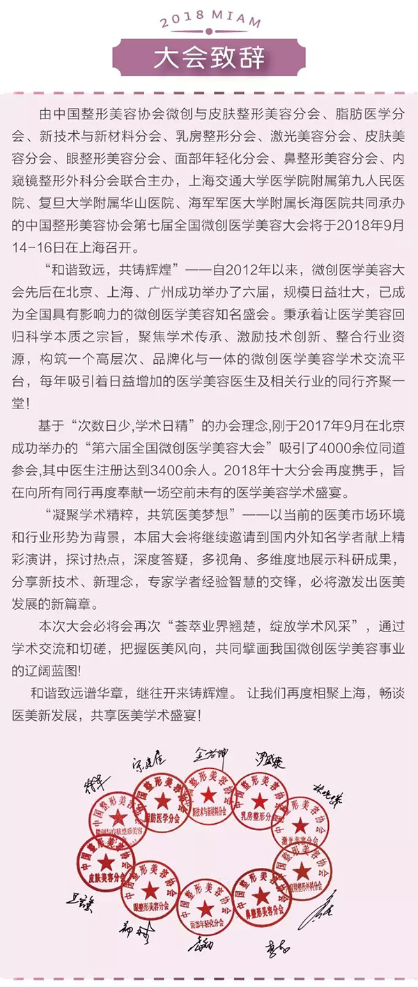 主辦單位:中國整形美容協(xié)會微創(chuàng)與皮膚整形美容分會 · 脂肪醫(yī)學(xué)分會新技術(shù)與新材料分會 · 乳房整形分會激光美容分會 · 皮膚美容分會眼整形美容分會 · 面部年輕化分會鼻整形美容分會 · 內(nèi)窺鏡整形外科分會