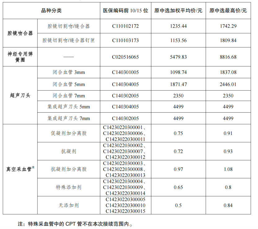 不過腔鏡吻合器、神經(jīng)專用彈簧圈、超聲刀頭、真空采血管、可單獨使用的螺釘、矯形板等耗材仍有最低價聯(lián)動的限制,報價不得高于該產(chǎn)品在各省集采中的最低中選價,以及各省掛網(wǎng)最低價。
