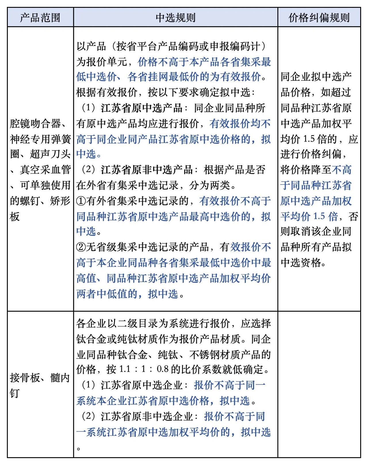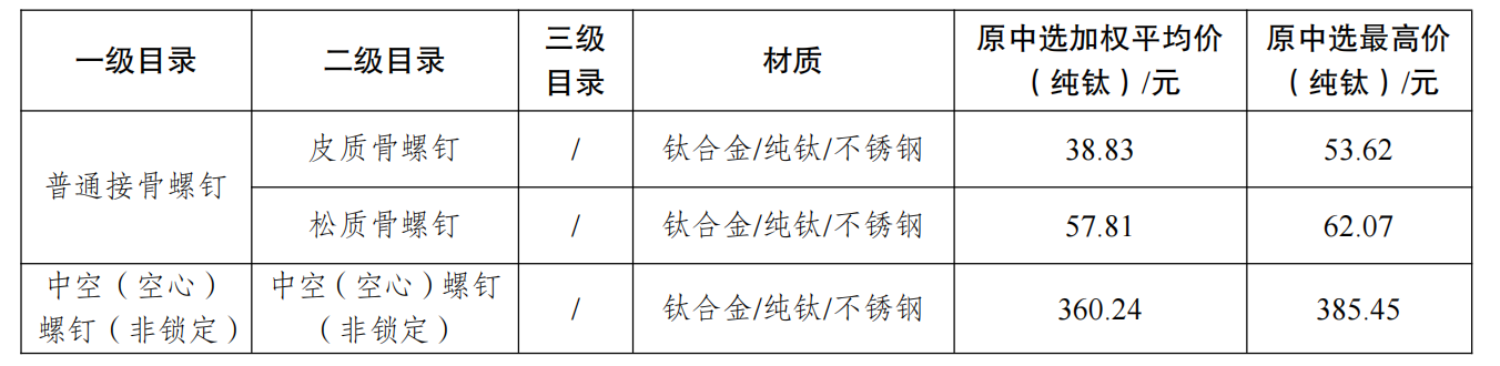 中選規(guī)則方面,此次骨科的接骨板、髓內(nèi)釘兩類耗材未明確最低價聯(lián)動的報價要求。江蘇省原中選企業(yè)的報價,不高于同一系統(tǒng)本企業(yè)江蘇省原中選價格,擬中選;江蘇省原非中選企業(yè)的報價,不高于同一系統(tǒng)江蘇省原中選加權(quán)平均價,擬中選。