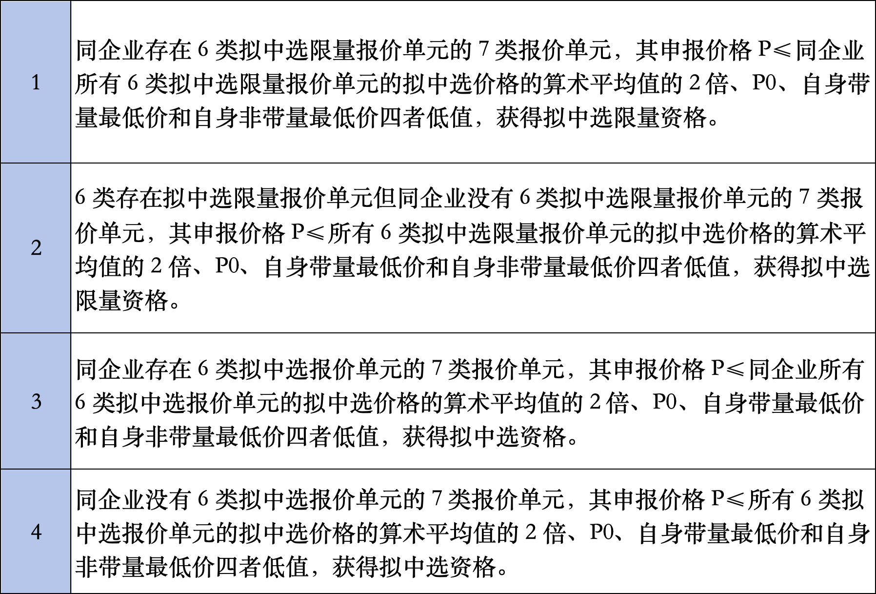 其中,在同采購(gòu)品種同類別內(nèi)(1類到6類),符合企業(yè)報(bào)價(jià)要求的報(bào)價(jià)單元滿足以下條件之一的,獲得擬中選限量資格: