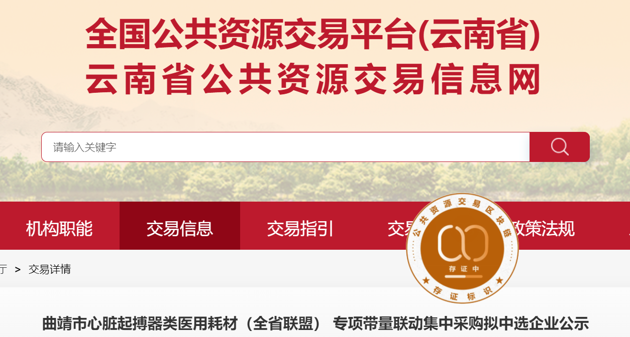 近日,云南公共資源交易中心公布曲靖市心臟起搏器類醫用耗材(全省聯盟)專項帶量聯動集中采購擬中選企業及擬中選產品清單。