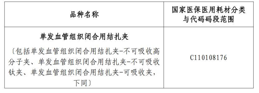 根據(jù)《征求意見稿》,集采范圍包括單發(fā)血管組織閉合用結(jié)扎夾、連發(fā)血管組織閉合用結(jié)扎夾。