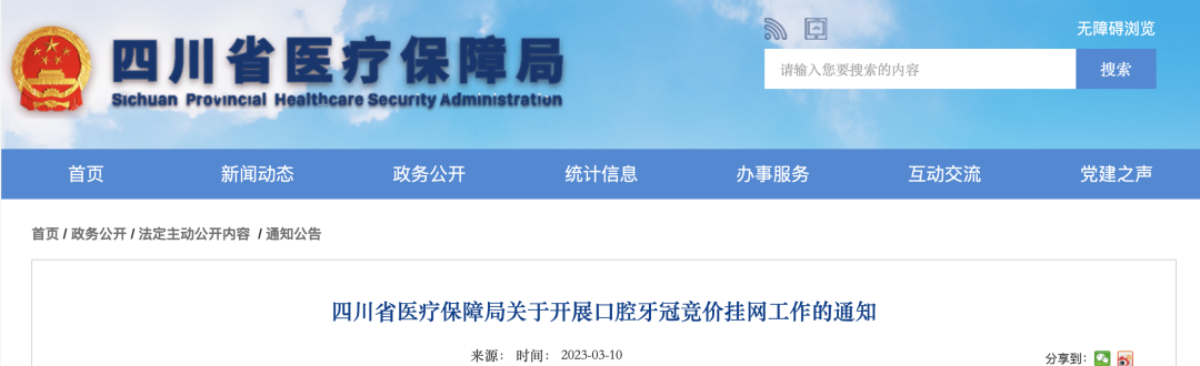3月10日,四川省醫保局發布《關于開展口腔牙冠競價掛網工作的通知》(以下簡稱《通知》)。