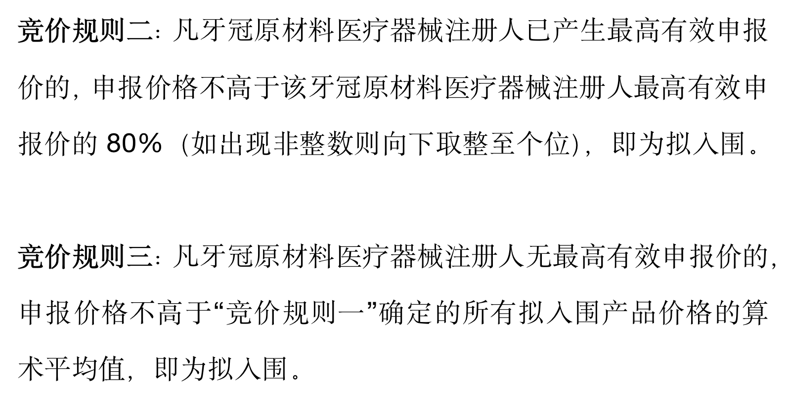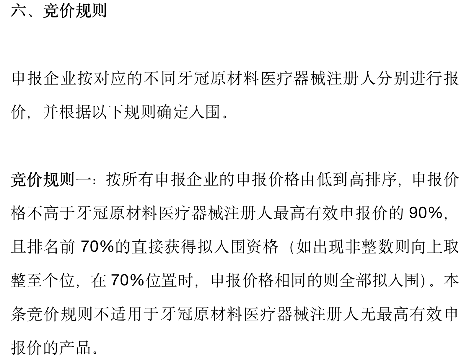 申報企業按對應的不同牙冠原材料醫療器械注冊人分別進行報價,并根據以下規則確定入圍。