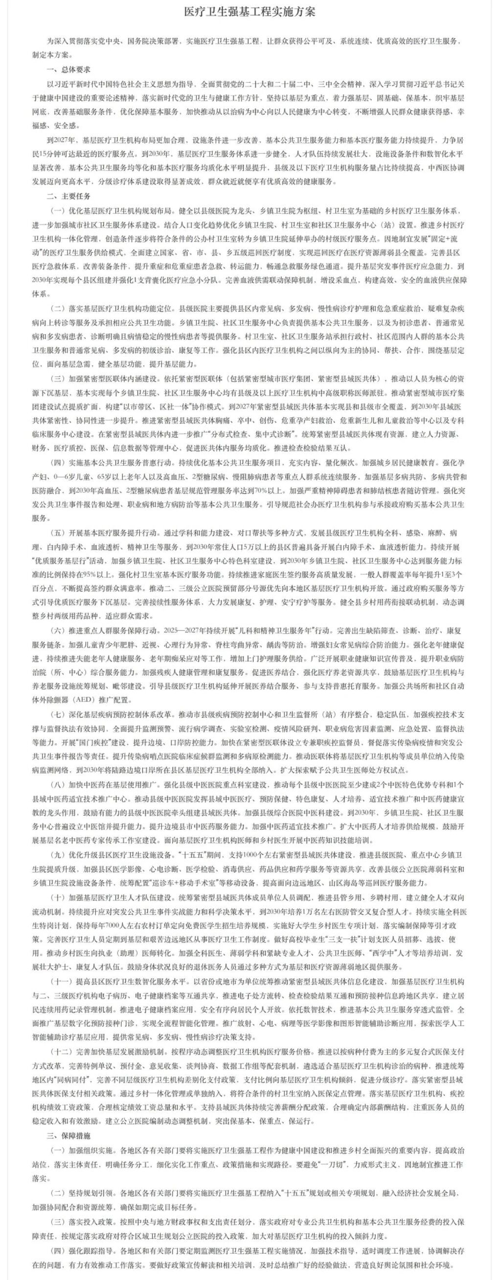 9月10日,據中國政府網消息,國務院批復同意《醫療衛生強基工程實施方案》(簡稱《實施方案》),并附上方案全文。