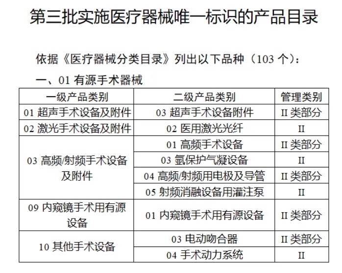 去年2月,國家藥監局、國家衛健委、國家醫保局發布《關于做好第三批實施醫療器械唯一標識工作的公告》。