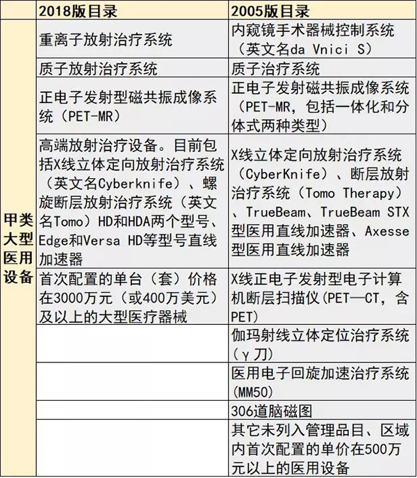 4月9日,國家衛健委發出關于發布《大型醫用設備配置許可管理目錄(2018年)》的通知,新版甲類、乙類大型醫用設備的管理品目正式出爐。