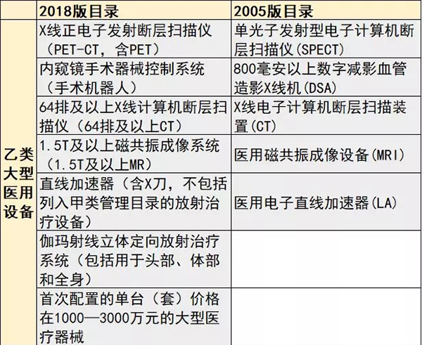 以下為2018版目錄下甲類、乙類大型設備的具體品目,及2018版目錄與2005版目錄的對比情況: