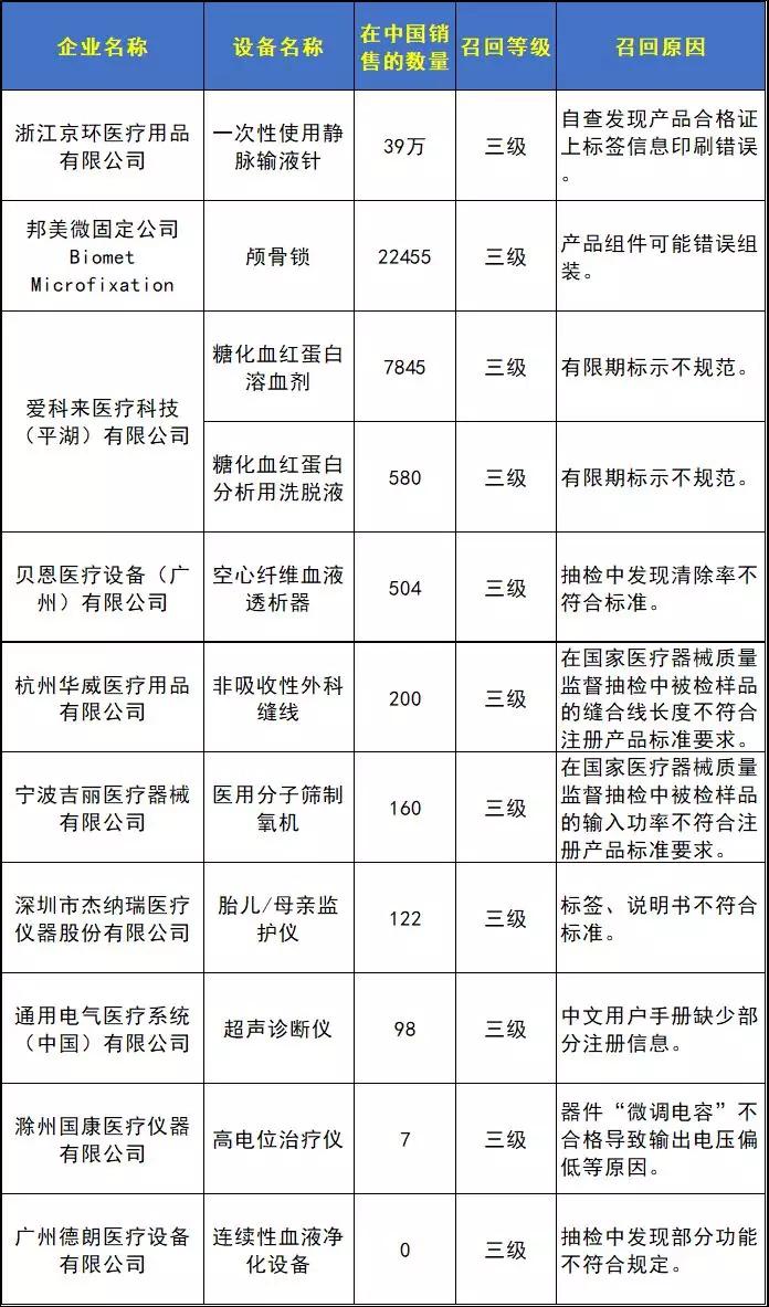 10月23日-10月25日,國家食品藥品監督管理局發布了大批醫療器械主動召回的通知。