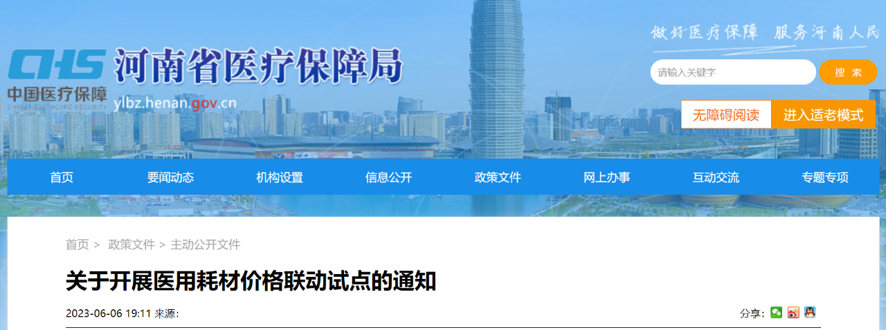6月6日,河南醫保局發布《關于開展醫用耗材價格聯動試點的通知》(簡稱《通知》),首批選取了骨科類醫用耗材進行試點。
