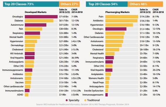 Projected Specialty Drug Spending, Developed Countries vs. Pharmerging