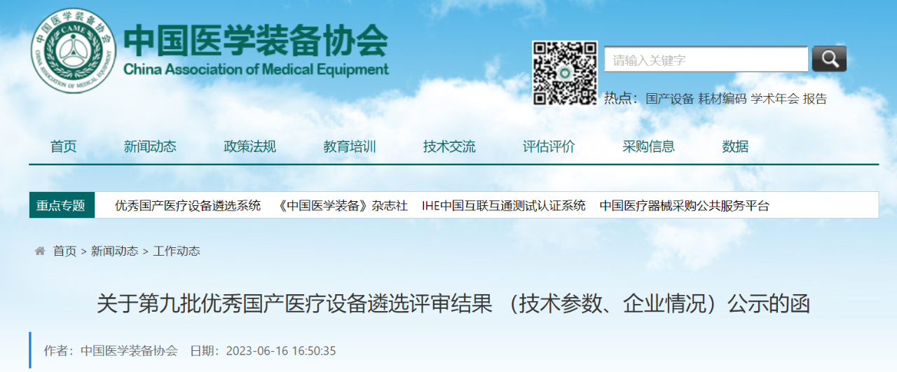 近日,中國醫(yī)學裝備協(xié)會公示了第九批優(yōu)秀國產(chǎn)醫(yī)療設備產(chǎn)品遴選評審結(jié)果。