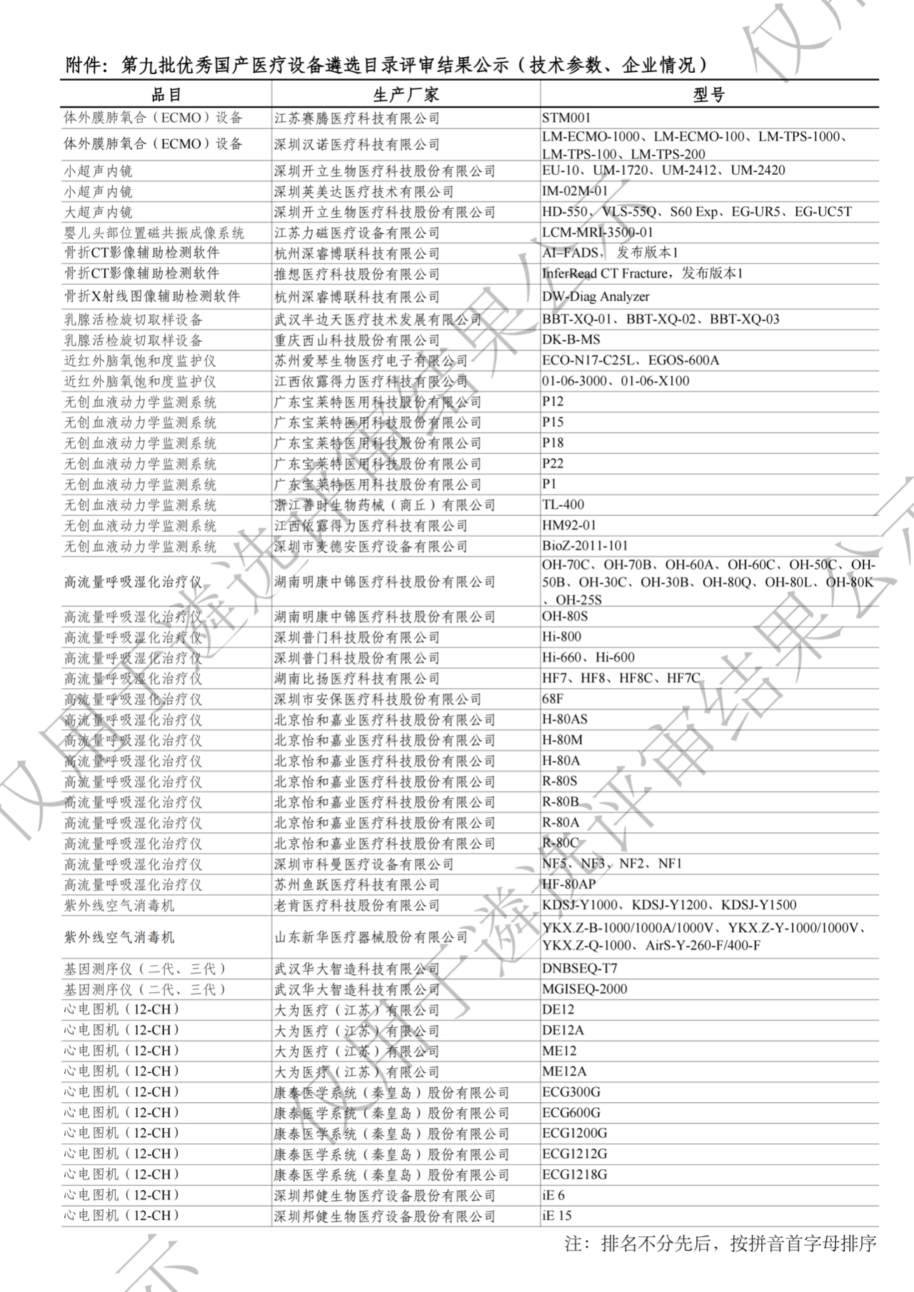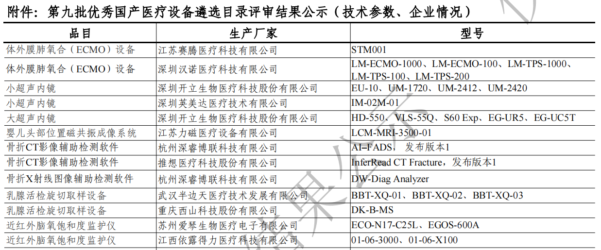 附:第九批優(yōu)秀國產(chǎn)醫(yī)療設備產(chǎn)品目錄