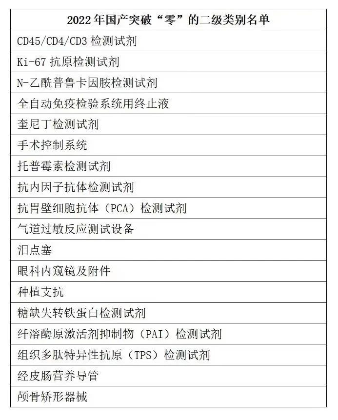 從具體領域來看,我國共有18個二級類別的產(chǎn)品在2022年獲得了“零”的突破,其中有超過60%的“零”突破主要集中在體外診斷領域。