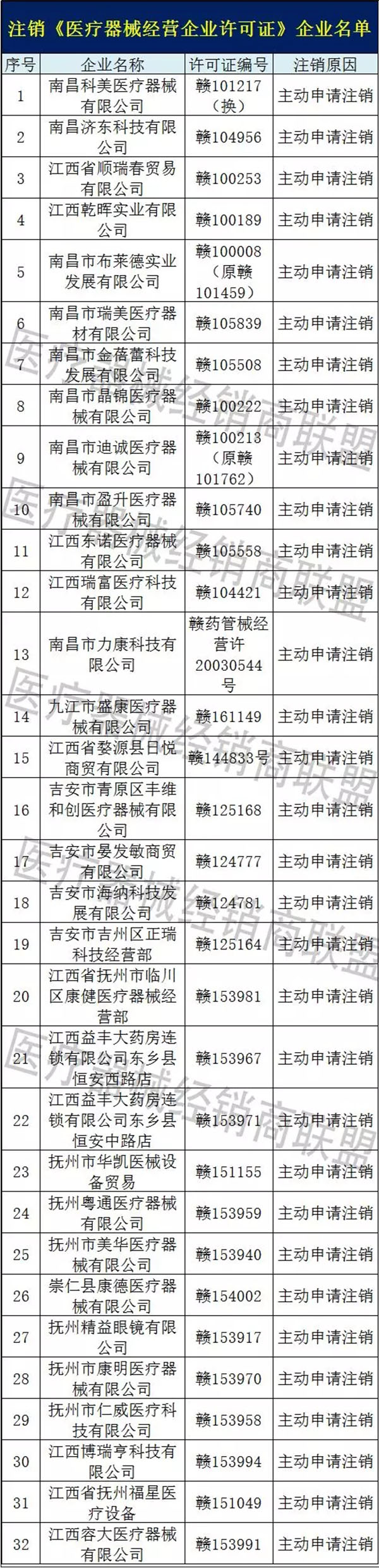 南昌科美醫(yī)療器械有限公司等49家企業(yè)主動(dòng)申請(qǐng)注銷;
