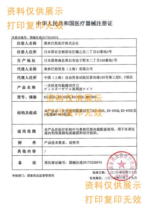 奧林巴斯一次性高頻切開刀KD-650L具有一個可調節的兩步刀長度和一個圓頂形切割部分,旨在簡化標記,并使切口和解剖的所有方向。在鞘層上可以看到明顯的標記,以提供切割深度的內窺鏡驗證。